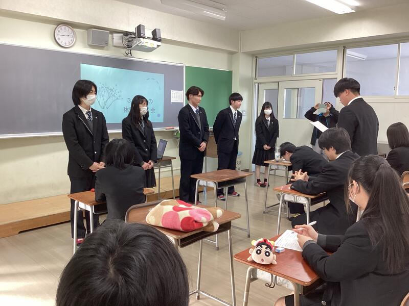 各年次、各系列ともに今年一年間の学習の成果を発表しあいました。今年度から始まった4系列合同事業についても発表があり、教頭先生からは企業や役場、幼稚園・小学校・中学校の生徒たちなど、地域の多くの人たちとの関りを大切にして、これからも学習をしていこうという講評をいただきました。