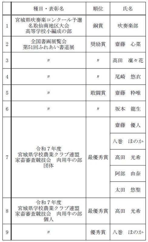 賞状は以下の人たちに授与されました。おめでとうございます。