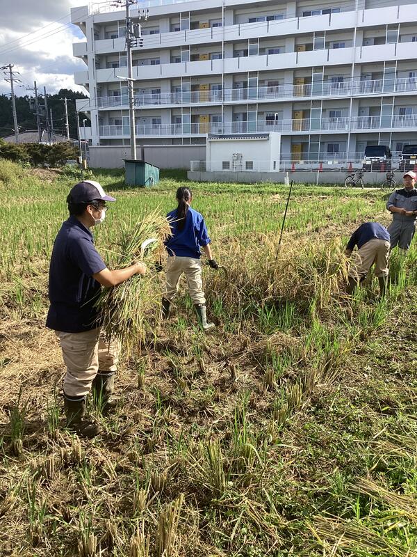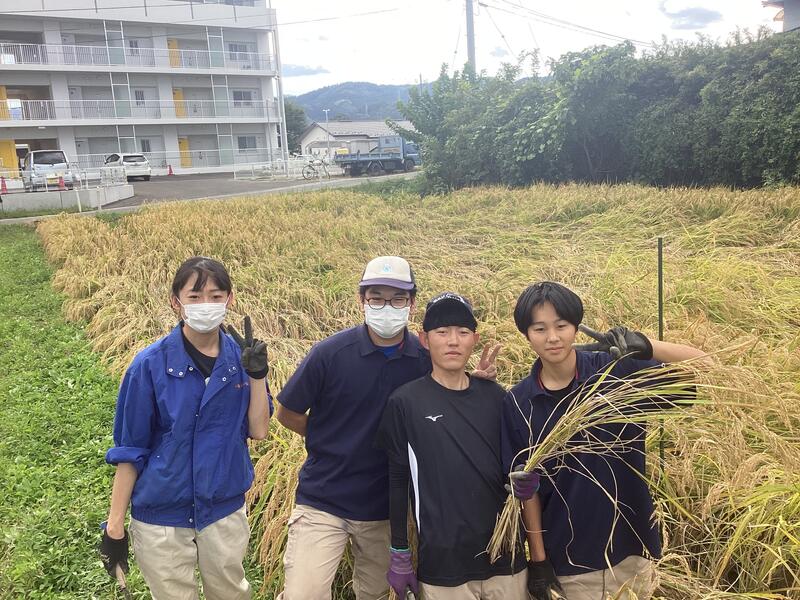 本日、農学系列の3年次が本校実習田の稲刈りを行いました。
