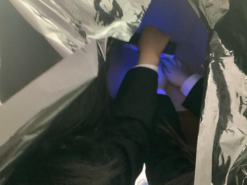専用のローションを汚れに見立てて塗り、ブラックライトにかざすと、洗い残した部分が光ります。「爪や指の間、手首に汚れが残っている!」と、生徒たちは自分の手を見つめて驚きの声を上げていました。