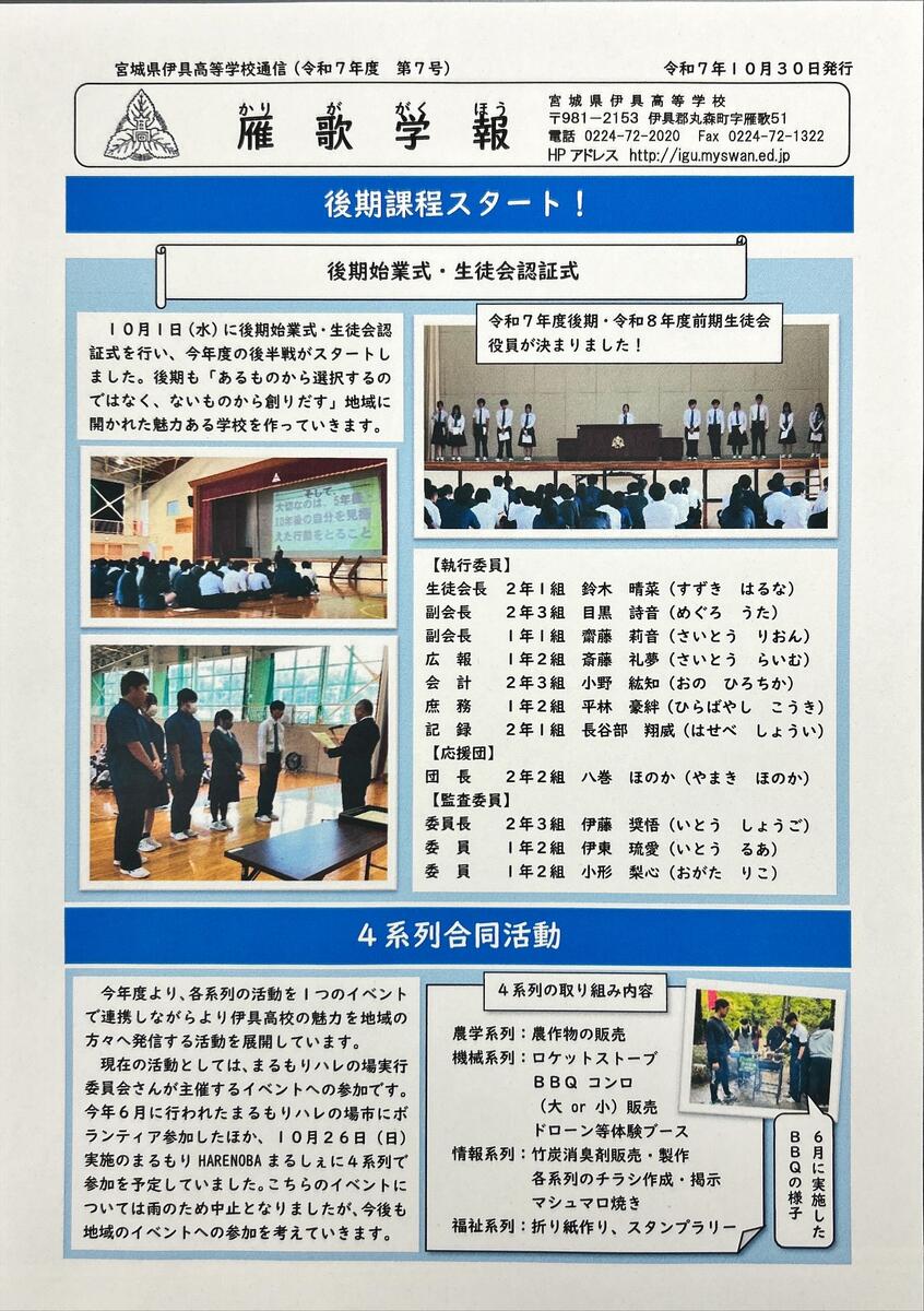 令和7年度 雁歌学報 第7号(PDF)